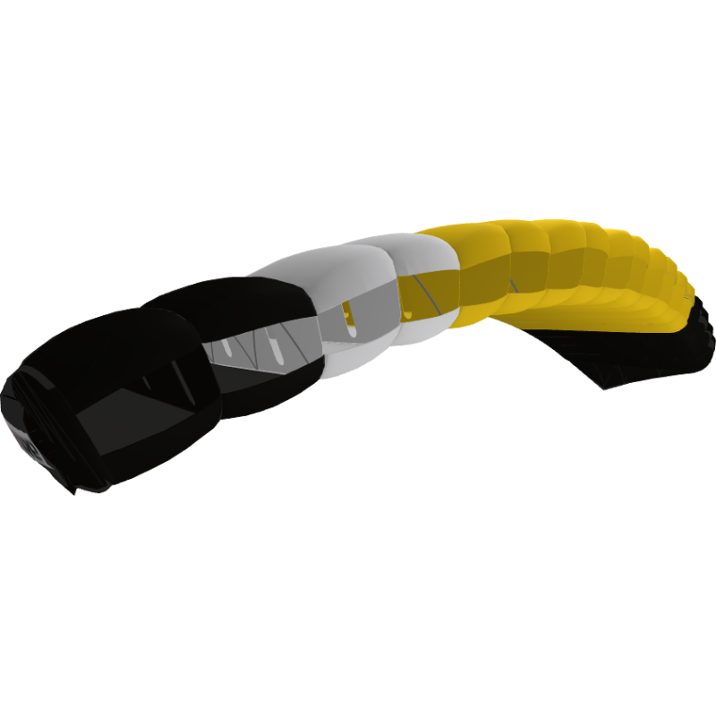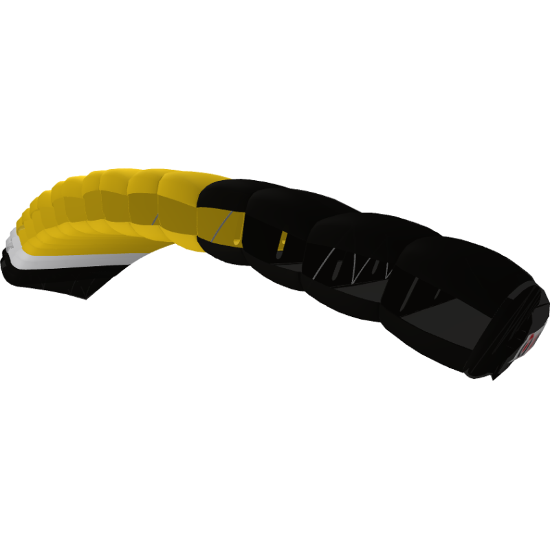 It is an elliptical 9 cell with light shaping, constant cell aspect ratio, with sweet consistent on-heading openings. A forgiving canopy with a powerful flare and responsive controls.